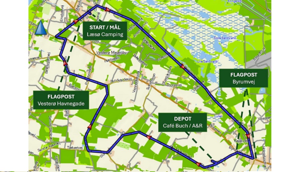 - Deltagere skal køre efter færdselsloven. Der er ikke trafikregulering, så man skal overholde vigepligt.