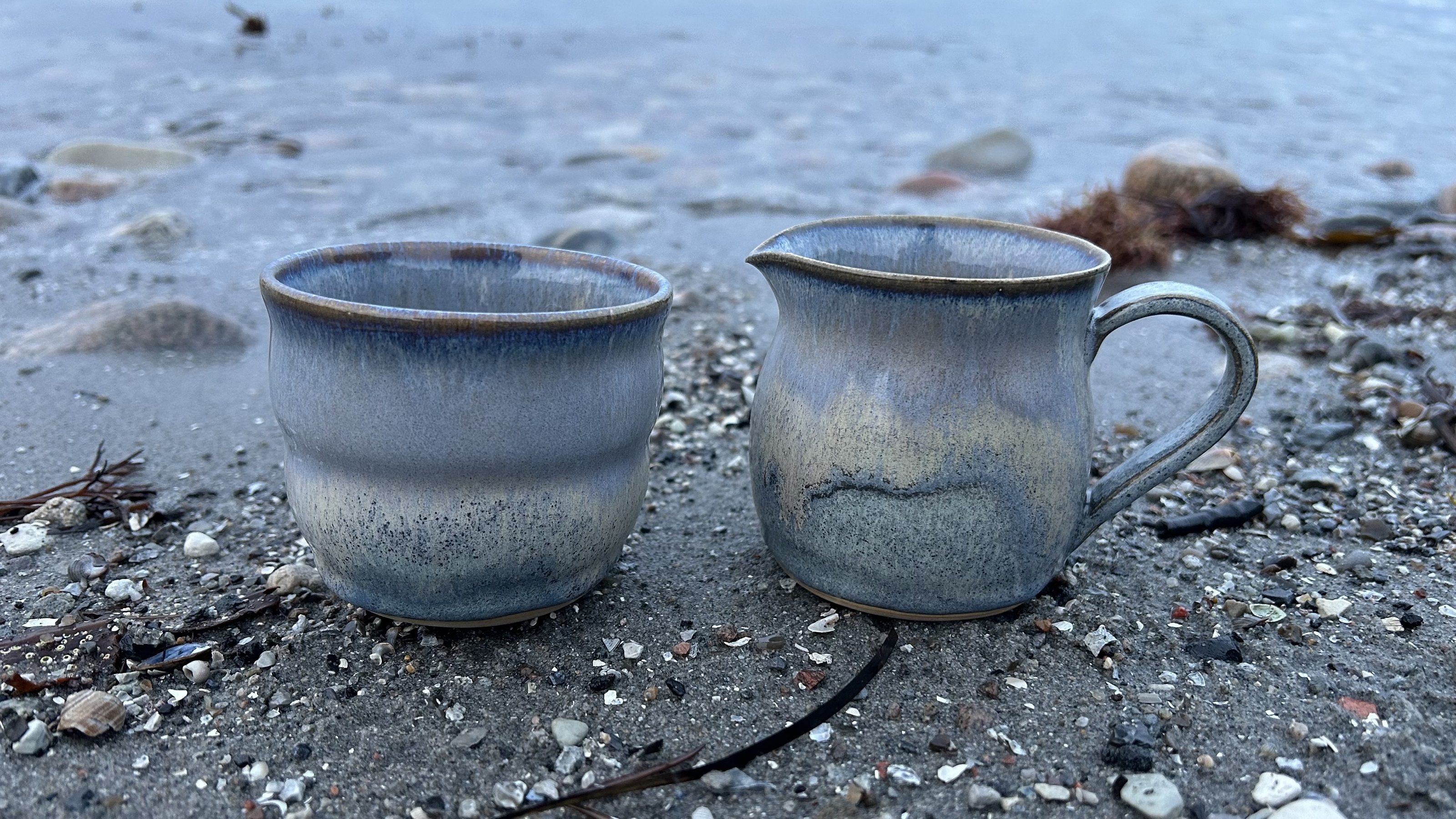Når man er på Læsø, er havet en kæmpestor del af hverdagen - lige fra en tur til stranden over betydning af det lokale fiskeri og til øens livsnerve - Læsøfærgen. Havet leverer også masser af inspiration i både former og farver, og således finder man en skøn blå marin glasur som gennemgående element i mange af Nannas arbejder.